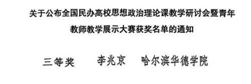 青年教师教学展示大赛中,经过前期线上评审淘汰,最终入围现场展示赛共有50位教师,参赛选手围绕思政课重点章节内容进行教学展示,现场氛围紧张热烈。最终我校青年教师李兆京凭借扎实的专业知识、出色的教学技巧和精心的教学设计,在众多选手中脱颖而出,荣获三等奖。同时,我校因在赛事组织、教师选拔与培训等方面工作出色,荣获“优秀组织奖”。