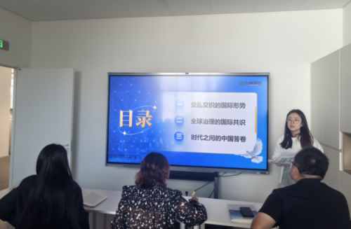 随后,会议进入专题说课环节。柴玲玲老师和孙阳老师依次围绕本学期第六专题——“践行多边主义 完善全球治理”进行了说课。两位老师分别从教学目标设定、教学重难点剖析、案例素材选取、课堂活动设计、教学逻辑构建以及课后思考延伸等方面,详细阐述了各自的教学思路与实施方案。说课过程内容丰富、重点突出,展现了授课教师对专题内容的深入理解和精心准备,为全体教师的备课提供了参考素材。