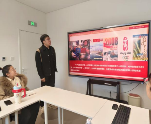 随后,教研室主任杨漫秋组织全体教师围绕科学发展观专题教学,系统梳理了教学中的重点与难点内容。之后,范雪松老师进行示范课的讲解,他从现实案例入手,生动形象的将本专题的重点难点内容娓娓道来。同时,引用丰富的案例教学,提升了学生对于本专题的认识与兴趣。最后,杨漫秋老师鼓励大家要积极交流、凝聚智慧,共同打造富有吸引力的思政课堂。在随后的讨论环节,与会教师纷纷踊跃发言,分享了各自在教学思路与方法上的创新做法,同时教研室主任杨漫秋为期末的收尾工作进行了详细的部署安排。