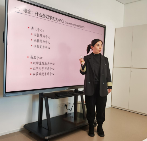 活动开始,SC教学改革内训师、习近平新时代中国特色社会主义思想概论课教研室副主任胡凤娇率先开启转训分享,她主要结合其在兰州参加SC教学改革培训的所学所悟,从理论内涵与实践框架两方面,解析了“以学生为中心”的改革逻辑,为整场培训锚定了方向。 随后的交流环节中,形势与政策教研室副主任周启新、思想道德与法治教研室副主任赵青梅及习近平新时代中国特色社会主义思想概论课两位任课教师钱琨和胡競兮,分别结合各自课程特色,分享了教学改革中的具体经验。从课堂互动设计到学生能力评估体系,从案例教学创新到小组协作模式优化,多维度展现了“教师中心”向“学生中心”转变的可行路径。